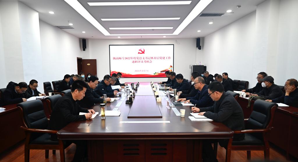 会上,文学与传媒学院、数信学院、农林技术学院、机电工程学院、电子商务学院、初等教育学院、外国语学院、历史文化与旅游学院、音乐与舞蹈学院、体育与健康学院、美术与设计学院和马克思主义学院党总支书记对2022年组织开展的党建工作进行了全面述职汇报。继续教育党总支、图书馆党总支、信息中心党总支、机关党总支、附校党支部、离退休党支部、陇南师专西北师范大学初等教育学院学生党支部、陇南师专河西学院教师教育学院学生党支部作了书面述职。