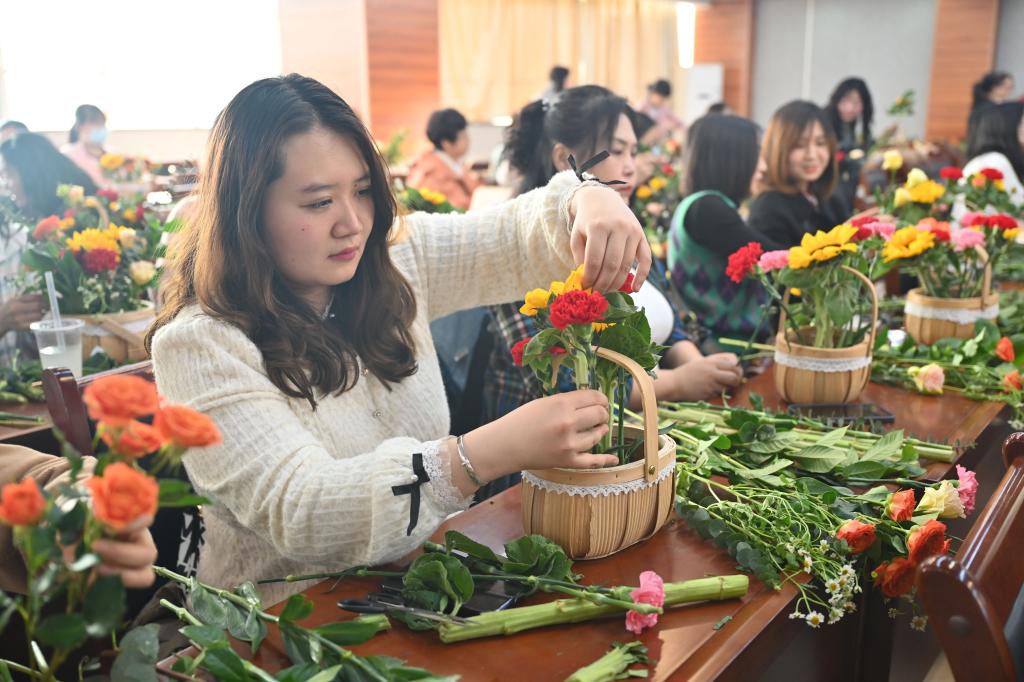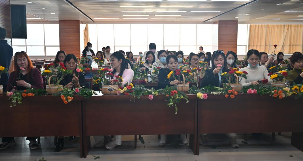 为庆祝第113个“三八”国际劳动妇女节,丰富广大女教职工的业余文化生活,3月8日下午,由best365工会组织的“花香悦生活·礼赞新时代”主题花艺活动在餐饮楼五楼举行。100多名女教职工参加了此次活动。