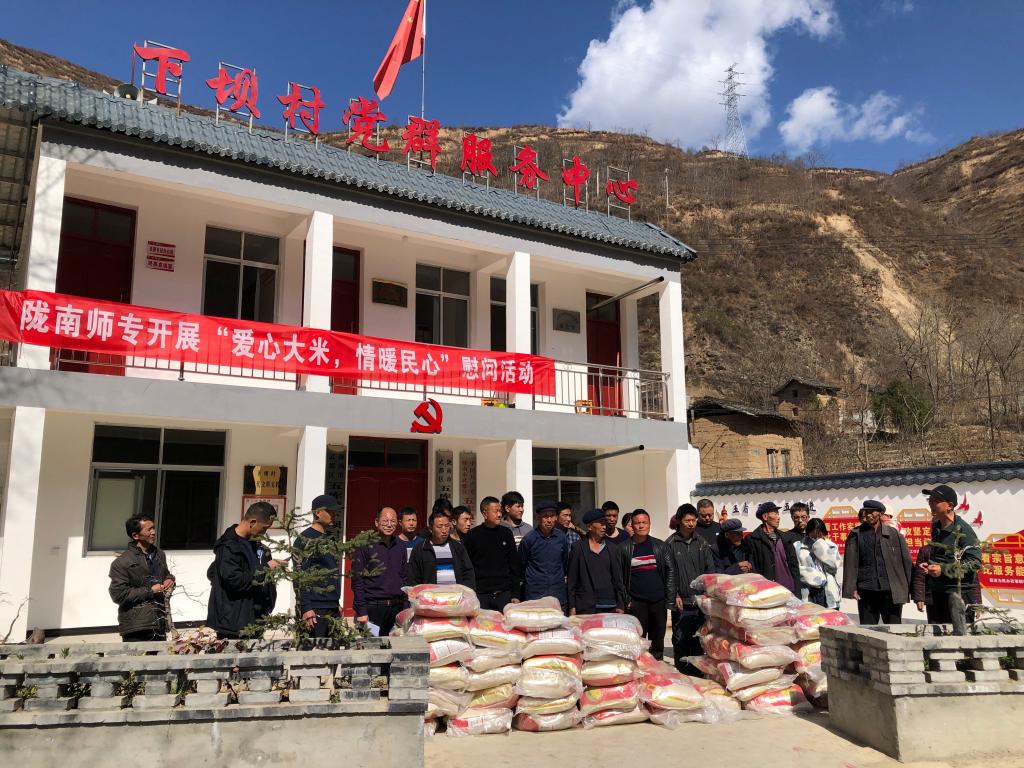 3月8日,一辆载着7吨多优质大米的卡车,载着陇师浓浓的爱心关怀驶向五库镇上坝村、下坝村、沙坝村、能干村等4个村慰问村民,希望他们在新的一年能克服困难,积极复工复产,用勤劳的双手创造财富,开辟新的致富路,弥补疫情带来的损失。