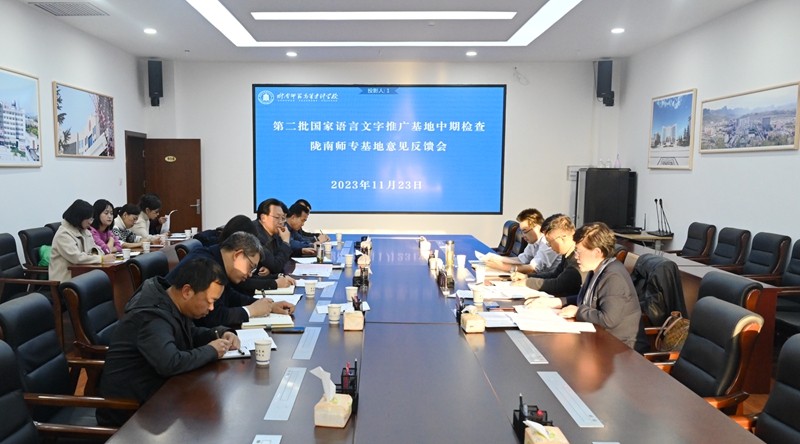 11月23日,省教育厅语言文字管理处处长、省语委办主任刘彦文带领评估专家组成员、兰州大学文学院副教授、国家语言文字推广基地(兰州大学)副主任常萍,兰州交通大学文学院副院长、教授、国家语言文字推广基地(兰州交通大学)办公室主任武汉强来best365,通过听取汇报、查阅资料等方式,对best365国家语言文字推广基地进行中期检查。best365党委书记张弢、校长李艳红、副校长王胜青,相关职能部门和学院负责人参加了活动。
