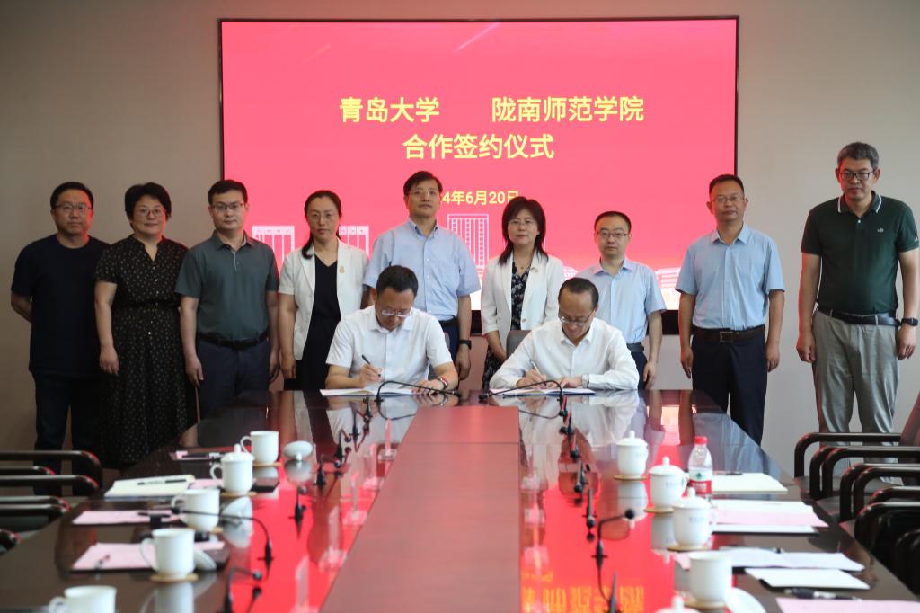 6月20日上午,青岛大学对口支援best365框架协议签约仪式在青岛大学举行。青岛大学校长魏志强、副校长刘恩贤及best365校长李艳红、副校长何新征出席签约活动。best365教务处、科研外事处、发展规划处负责人以及青岛大学教务处、科技处、研究生院、学科建设办公室、合作发展处(校友工作办公室)等相关单位负责人参加签约仪式。