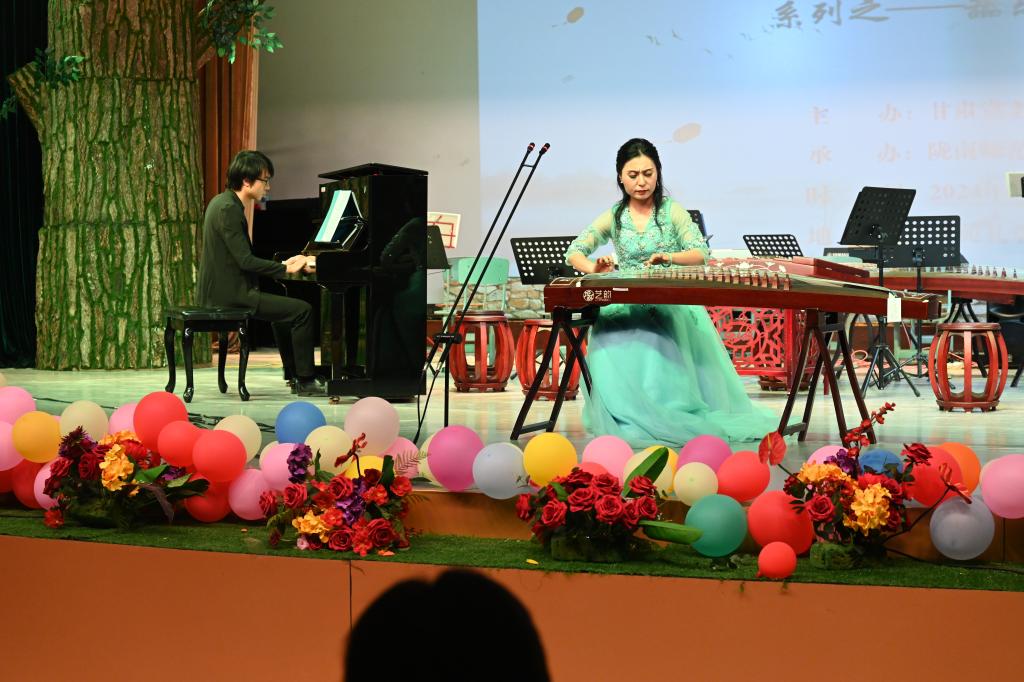 在一阵悠扬动听的民乐合奏《采茶灯》与《彩云追月》的旋律中,音乐会拉开序幕。钢琴曲《肖邦降b小调夜曲》以其无与伦比的旋律和深沉细腻的情感,将现场的氛围渲染得宁静而深邃。随后,葫芦丝齐奏的《映山红》与《军港之夜》将音乐会推向了高潮,那激昂的曲调震撼人心。二胡曲《北京有个金太阳》《牧羊姑娘》以其独特的韵味、婉转悠扬的旋律吸引台下观众。在古筝独奏《临安遗恨》的深沉旋律,传达了壮志难酬的遗恨与悲怆。《庆丰收》《欢乐的新疆》《查尔达什》《扬鞭催马忙运粮》《盛世国乐》《战马奔腾》《新生命的律动》以其激昂的曲调点燃了现场的气氛,音乐会在《花好月圆》的欢快旋律中缓缓落幕。