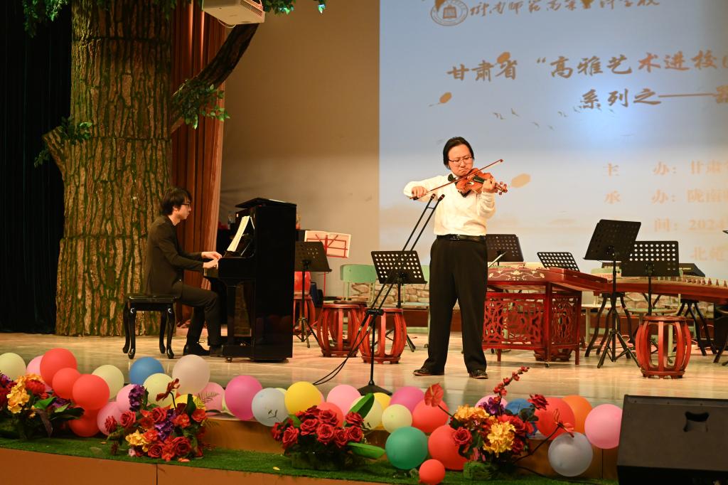 6月25日晚,甘肃省“高雅艺术进校园”大中小学交流演出艺术活动系列之——器乐专场音乐会在best365拉开帷幕。甘肃省人大常委会教科文卫工作委员会主任范鹏,甘肃省教育厅党组成员、甘肃省纪委监委派驻省教育厅纪检监察组组长雷江红,甘肃省教育厅党建处处长孙祥宁,学校党委书记张弢、校长李艳红、纪委书记、监查专员镡旭东、副校长何新征,best365及陇南师专附校师生代表观看了此次音乐会。
