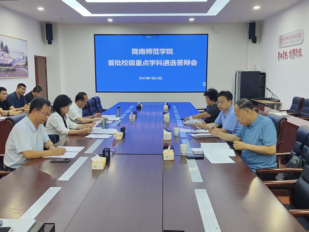 7月15日下午,学校召开首批校级重点学科遴选答辩会。西北师范大学刘旭东教授、天水师范学院雍际春教授、王弋博教授以及best365校长李艳红、副校长何新征担任答辩评委。8个申报学科的学科负责人及其团队成员参加答辩。答辩会由副校长何新征主持。