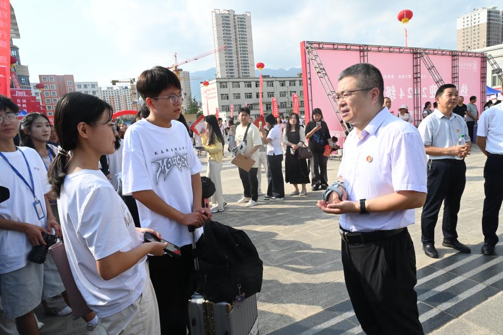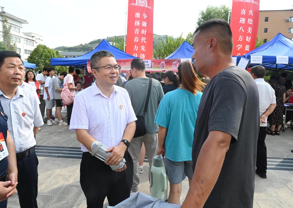 报到现场,张弢与新生及家长亲切交流,询问了新生的生源、专业、入学感受、对学校的期望以及未来的规划等情况,代表学校欢迎学生和家长的到来。他说,大学生活是一个全新的阶段,大家初入大学校园,要尽快适应大学生的新角色。希望新生们能够珍惜大学时光,不负韶华,努力学习,成长为有担当、有追求的社会栋梁之才,同时请家长们放心,学校会为学生们的提供全面的支持和资源,为学生提供优质的教育和成长环境。(文图/李 曼 马佩琴)