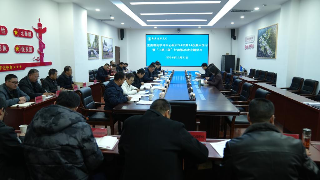 12月31日,学校党委召开理论学习中心组2024年第14次集中学习会暨“三抓三促”行动第25次专题会议,安排部署贯彻落实工作。党委书记向君主持会议。党委班子成员出席会议,各学院党总支书记、有关部门负责人列席会议。