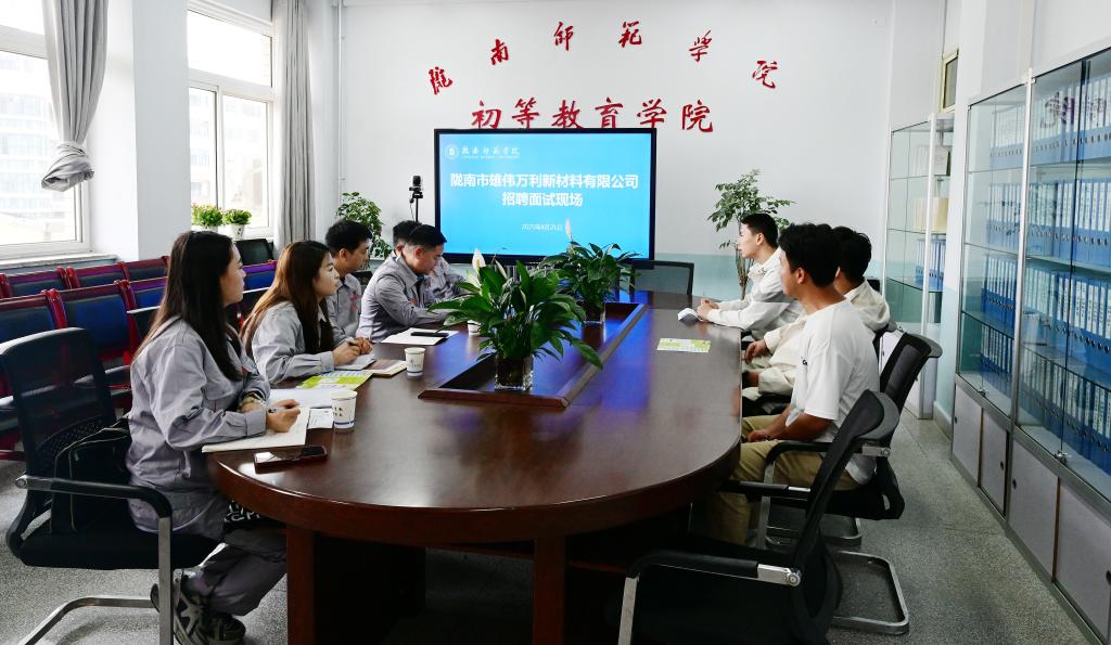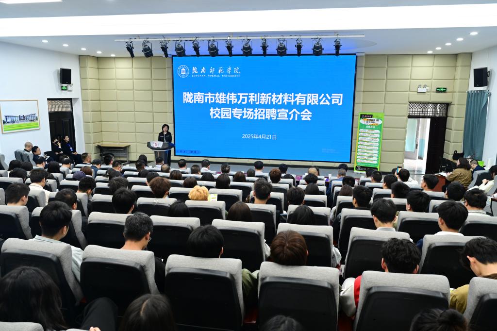 李艳红对陇南市雄伟万利新材料有限公司的到来表示热烈欢迎,对企业的发展成就给予高度评价。她指出,学校始终秉持“坚苦奋达”的陇师精神,而这种精神与企业追求卓越、勇于创新的价值观不谋而合。她鼓励同学们积极把握机遇,踊跃报名,树立正确价值导向、规划好人生航向、确立好事业方向,以服务国家战略和地方发展为己任,抓住招聘关键期,积极就业,主动对接企业需求,将所学知识运用到实际工作中,在企业实践中锤炼专业技能,在岗位奉献中传承陇师精神,把个人“小我”融入国家“大我”之中,书写属于陇师青年的时代答卷。