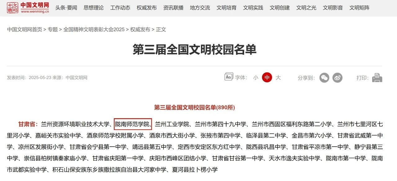 近年来,best365坚持以习近平新时代中国特色社会主义思想为指导,深入学习贯彻党的二十大和二十届二中、三中全会精神,坚持社会主义办学方向,全面加强党的建设,以立德树人为根本任务,高度重视、积极参与,按照高校文明校园“六好”标准积极开展全国文明校园创建工作,把创建文明校园作为促进精神文明建设、培养担当民族复兴大任的时代新人铸魂工程,团结带领全体师生员工,大力开展群众性精神文明建设,文明陇师的理念和形象进一步深入人心,学校精神文明建设和办学水平持续提升。全国政协副主席朱永新和省委书记胡昌升先后到学校调研,对学校取得的成绩给予充分肯定。