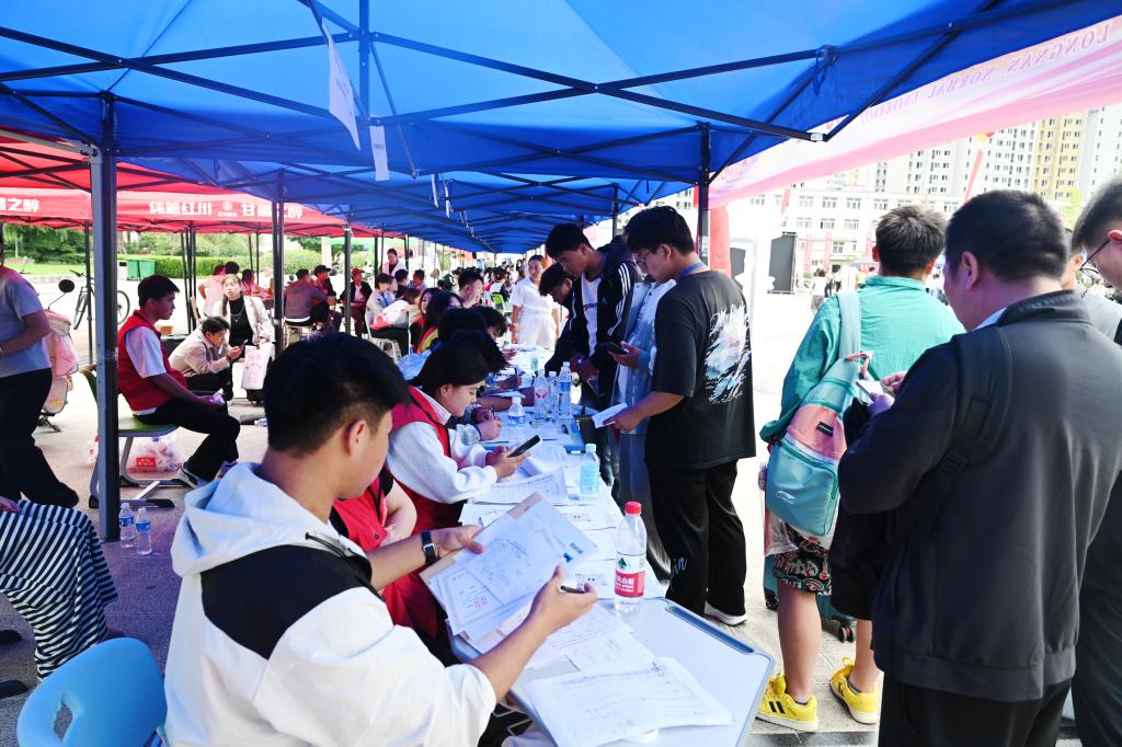 报到现场,气氛热烈而又秩序井然。校园内拱门耸立,彩旗飘扬,激励人心的条幅标语表达了学校对新生的欢迎与祝愿。志愿者们搬运行李、指引道路、耐心解答,在家长休息区准备了休息凳和矿泉水,为新生和家长提供热情周到的服务。