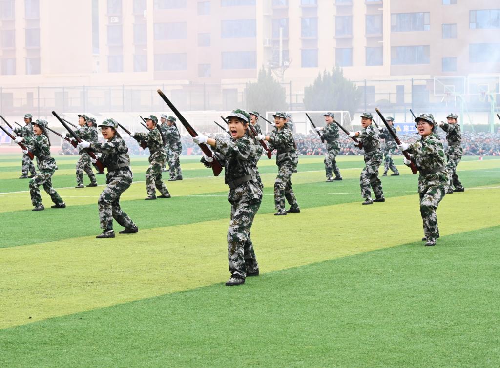 分列式结束后,特色科目表演轮番登场,将大会气氛推向高潮。花式队形方阵以饱满的精神展现团队协作之美;刺杀操方阵动作迅猛,尽显军人血性;擒敌、警棍盾牌操方阵招式精准有力,展现出过硬的技能素养;战术方阵模拟实战场景,灵活机动;教官倒功操方阵更是以干净利落的动作,诠释了军人的过硬本领。现场呐喊声、掌声此起彼伏,每一个节目都彰显着陇师学子奋发昂扬的斗志与永不言弃的精神。