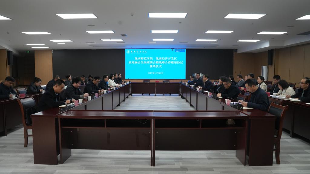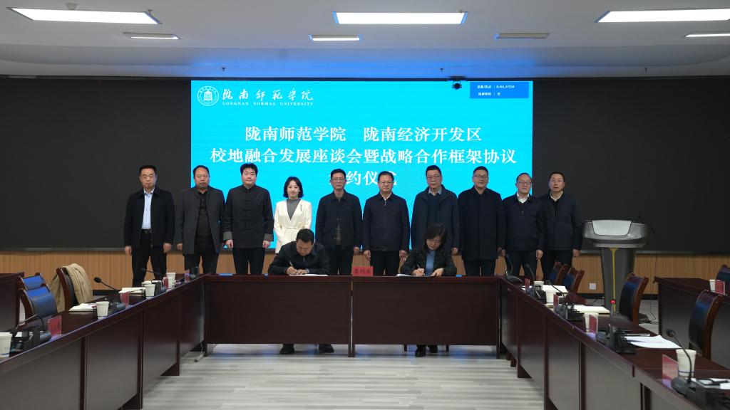 12月10日,学校与陇南经济开发区举行校地融合发展座谈会暨战略合作框架协议签约仪式。党委书记向君主持会议并讲话。校长李艳红,副校长李开明、镡旭东、何新征,党委委员李杰,陇南经济开发区党工委书记、管委会主任马文锋,党工委委员、管委会副主任王润雪、杨金龙出席会议。