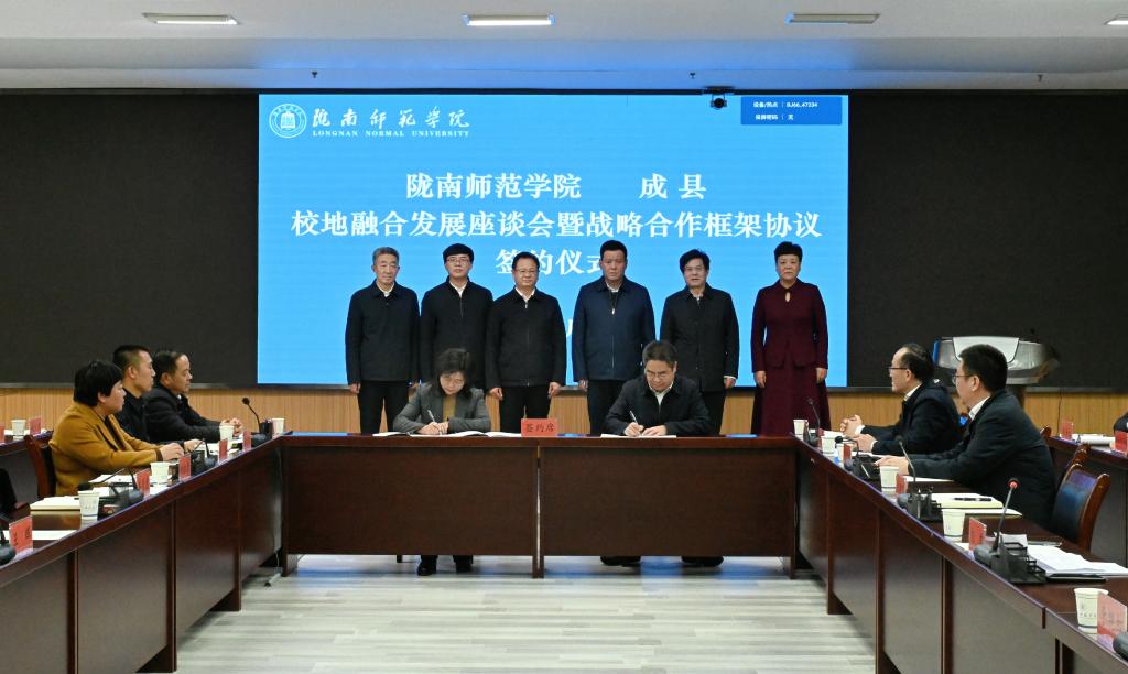 向君指出,学校办学88载,始终扎根成县、融入成县,学校的每一步发展都离不开成县历届党委、政府的鼎力支持,倾注了成县人民的关怀。成县新一届领导班子主政以来,胸怀教育事业,情系学校发展,帮助学校纾困解难;立足校地需求、推动融合发展,双方关系迈上新台阶。此次协议的签订,开启了学校与成县校地融合高质量发展的新征程。他表示,愿与成县携手共进,推动经济互动、社会互动、文化互动、人才互动,打造融合发展新典范。愿与成县同心同向,真心诚意与成县共享教育、科技和人才资源,以实际行动融入成县发展战略与经济社会发展,共筑双向赋能新局面。愿与成县同题共答,着眼未来、谋篇布局,强化资源整合,凝聚各方力量,加快校地融合发展各项任务落实,铸就合作共赢新成效。希望双方以实实在在的行动,激发校地潜能,释放叠加效应,共同书写校地融合高质量发展新篇章,为高质量发展新陇南、新成县、新陇师贡献更大力量。