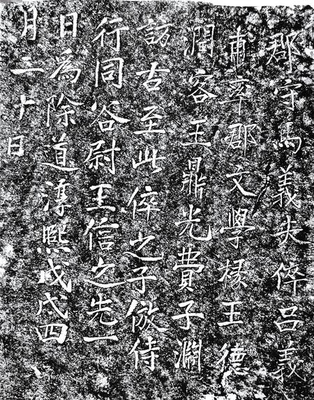 “桃花碑”实际应称《马琥题名》,摩崖刻石,纵110厘米,横115厘米,隶书6行,满行约7字,字径17厘米。此摩崖结字宽和,用笔舒展,波磔分明。部分字画剥蚀不清,无法辨认。(杨 军)