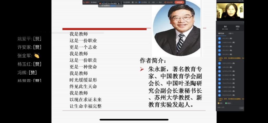 讲座中,李艳红博士从“任职须知”“涵义诠释”“怎样做个有尊严和幸福的教师”等几个方面,结合目前我国教育教学现状、新时代对教师的要求、疫情防控、best365升本工作及自身教育感悟等相关内容,联系实际和培训学员生动开展了如何在教育教学中获得尊严和幸福的深入交流。通过在线直播平台,学员们互动频繁,点赞不断。