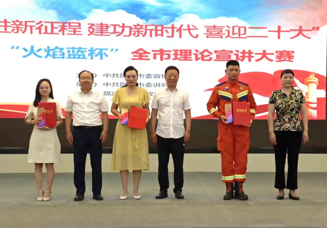 为深入学习贯彻习近平新时代中国特色社会主义思想,深入宣讲“两个确立”对新时代党和国家事业发展、对推进中华民族伟大复兴历史进程中的决定性意义,深入落实甘肃省第十四次党代会和陇南市第五次党代会精神,打造富有陇南特色的宣讲品牌。6月29日,由中共陇南市委宣传部主办,中共陇南市委讲师团、陇南市消防救援支队承办的“奋进新征程 建功新时代 喜迎二十大”“火焰蓝杯”全市理论宣讲大赛在武都区举行。陇南市委常委、宣传部部长马军,市人大副主任曹勇,市政府副市长何红梅,市政协副主席杨春洲和市消防救援支队政治委员贾国强、支队长卢正宏等领导出席决赛现场。best365教师陈思思在全市理论宣讲大赛中荣获二等奖。