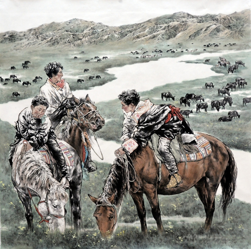 张永权 118×78cm 《齐心协力》水彩水粉