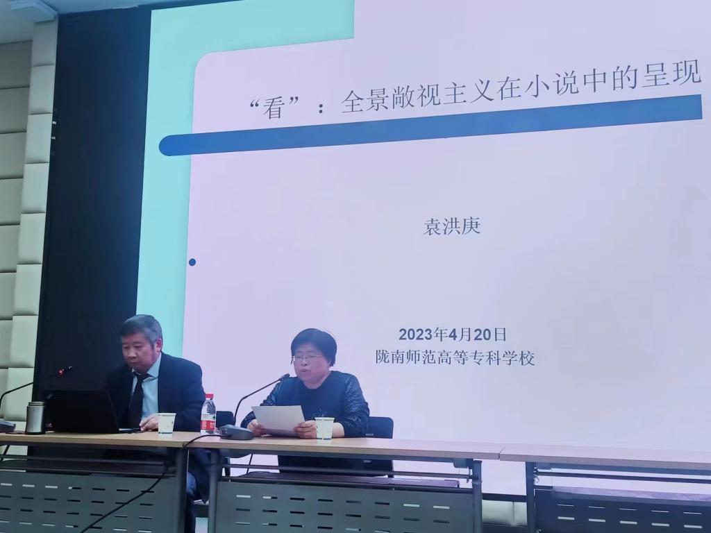 4月20日下午,甘肃省大学外语教学研究会会长、兰州大学外国语学院博士生导师袁洪庚教授应邀来best365作题为“看:全景敞视主义在小说中的呈现”的学术报告。外国语学院全体教师及部分学生共160余人参加了报告会。报告会由外国语学院院长王惠霞主持。