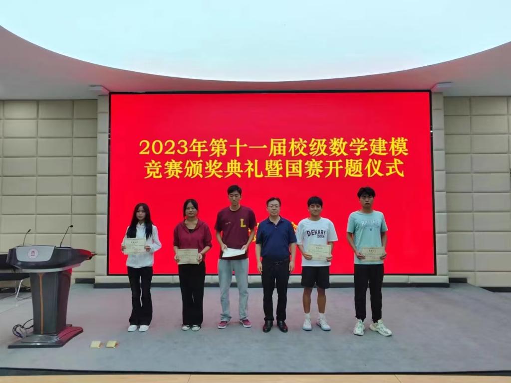 会上,与会领导为获得2023年第十一届校级数学建模竞赛的同学代表颁奖。
