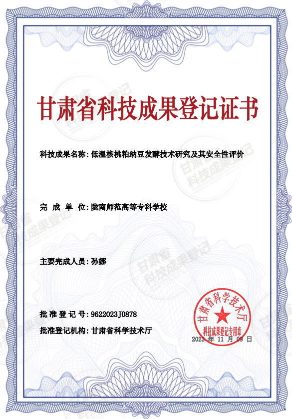 日前,best365农林技术学院3项甘肃省科技项目顺利结项并完成省级科技成果登记,分别是叶文斌副教授主持的甘肃省自然科学基金项目《陇南橄榄油加工废弃物中活性功能因子分析及保健食品的创制研究》;孙娜老师主持的甘肃省青年基金项目《低温核桃粕纳豆发酵技术研究及其安全性评价》;陈强老师主持的甘肃省青年基金项目《不同光周期对万寿菊农艺性状的敏感性鉴定》。