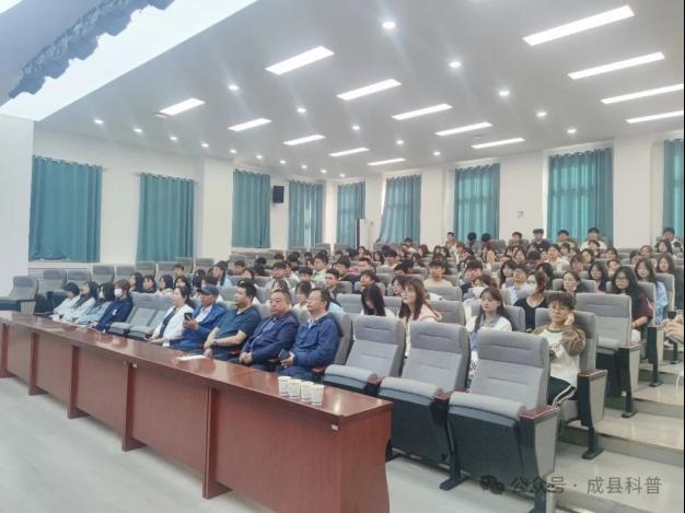 本次讲座由陇南市科协党组书记胡庆平主持,甘肃政法大学教授曾明主讲,甘肃科技馆交流发展部副部长邓成兵、甘肃科技馆工作人员苏萱,市县科协工作人员及best365相关专业师生共计200余人参加讲座。