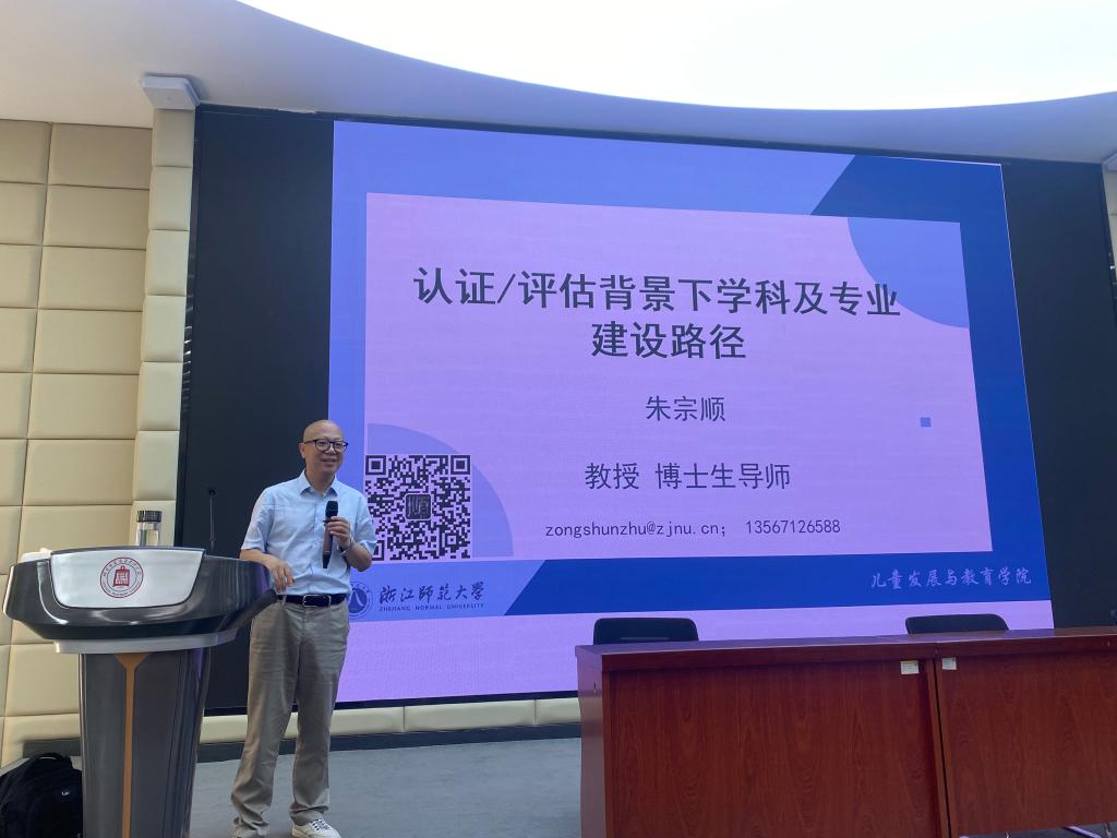 7月1日,浙江师范大学儿童发展与教育学院教授,原浙江师范大学杭州幼儿师范学院院长,教育部高等学校特殊教育教师培养教学指导委员会委员(2019-2022年)、浙江省学前教育研究会理事长、浙江省教育学会特殊教育分会副理事长、中国学前教育研究会理事及教师发展专委会副主任朱宗顺教授应邀为best365师生做了题为“认证评估背景下学科及专业建设路径”的学术报告。报告由学前教育学院院长王小会主持,学前教育学院师生共200多人聆听了本次报告。