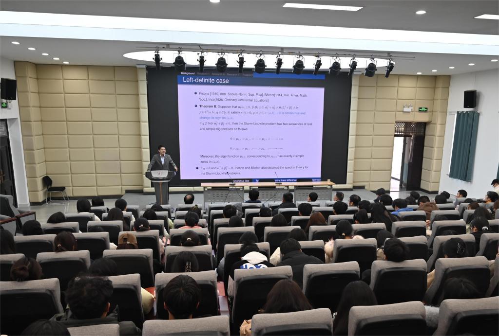 报告会介绍了边界条件下具有谱参数的二阶线性差分算子的实特征值的性质。通过回顾经典离散Sturm-Liouville问题的一些经典谱结果,讨论了右定差分算子和左定差分算子谱的性质,同时考虑了具有不同非线性谱参数的离散算子谱的性质,最后给出了谱结果的一些非线性应用。报告内容丰富、论证严密、既具有理论深度,又有一定的应用价值,师生受益良多。