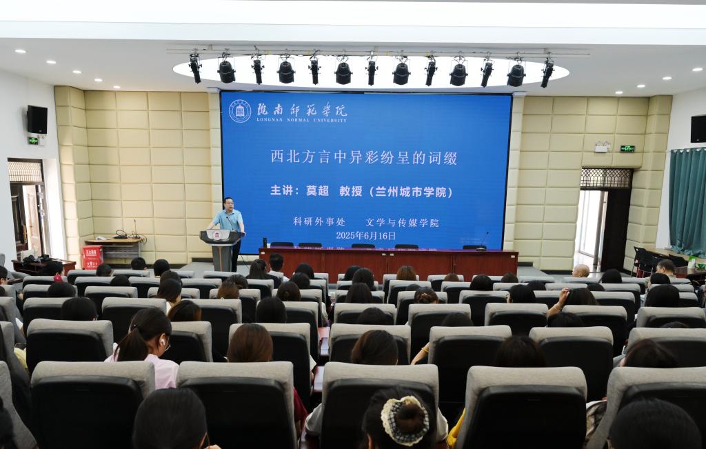 6月16日,兰州城市学院莫超教授应邀作了题为“西北方言中异彩纷呈的词缀”的学术报告。文学与传媒学院师生代表共150余人参加了此次报告会,报告会由文学与传媒学院院长鲁建平主持。
