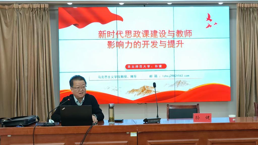 11月20日,西北师范大学马克思主义学博士生导师孙健教授应邀来best365思政大讲堂作了题为“新时代思政课建设与教师影响力的开发与提升”的学术报告。best365师生100余人参加了报告会。报告会由科研外事处、马克思主义学院主办,马克思主义学院院长杜向辉主持报告会。