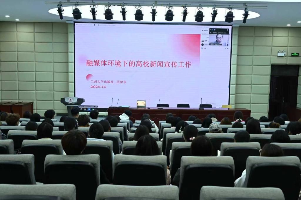 11月20日晚,兰州大学出版社副总编辑法伊莎应邀为best365师生作了“融媒体下的新闻宣传工作”线上专题讲座。新闻中心师生代表一百余人聆听了报告会。