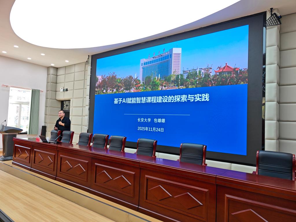 11月24日下午,教学质量监控与评价中心特邀长安大学理学院数学与应用数学系教授、博士生导师包雄雄,以《基于AI赋能的智慧课程建设探索与实践》为题作学术报告。