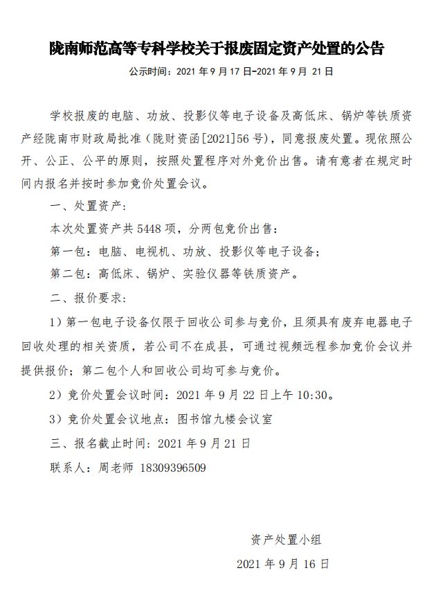 上一条:报废固定资产处置成交公告