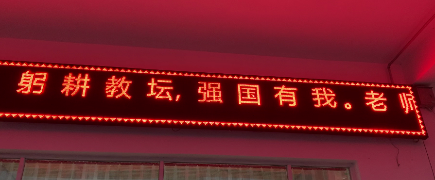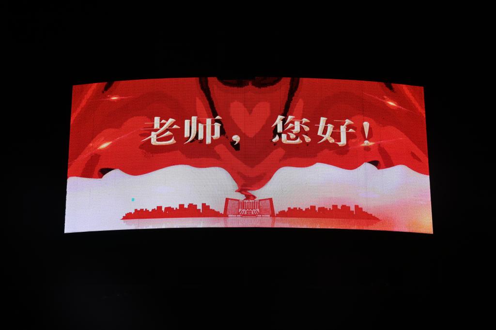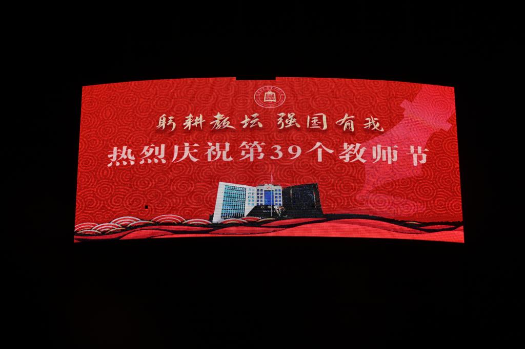“躬耕教坛,强国有我”“老师,您好”“教师节快乐”“青春引路人”……祝福的话语显示在科技楼、餐厅、电子商务学院等LED屏上,以字幕滚动的方式为教师“亮灯”,表达了全校师生对教师的浓浓祝福和崇高敬意。