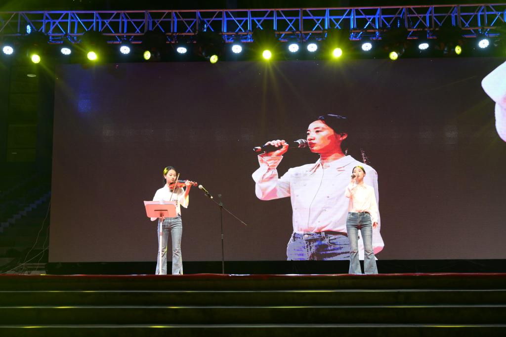 9月19日晚,学校举行2024年迎新晚会。学校副校长李杰,党委委员马馥芸、张益斌,武警陇南支队执勤三大队少校大队长牟晓辉,各部门负责人,各学院团总支书记、新生辅导员、承训教官和2024级全体新生欢聚一堂,共同观看现场演出。