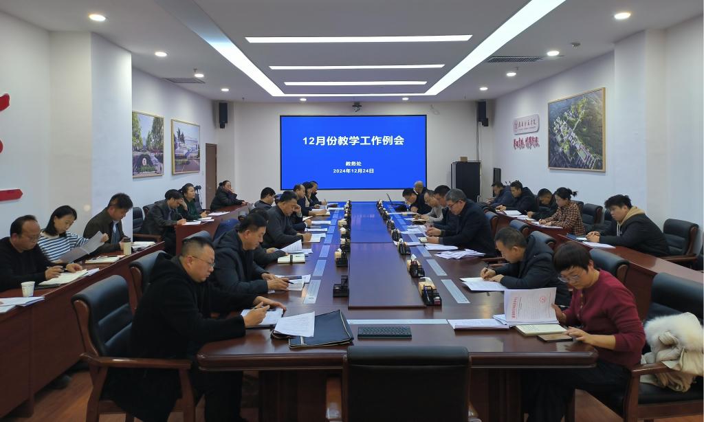 12月24日下午,学校召开了12月教学工作例会,副校长李开明出席会议并讲话,二级学院院长、副院长,质评中心、本科部、教务处等部门全体人员参加了会议。会议由教务处处长杨建东主持。