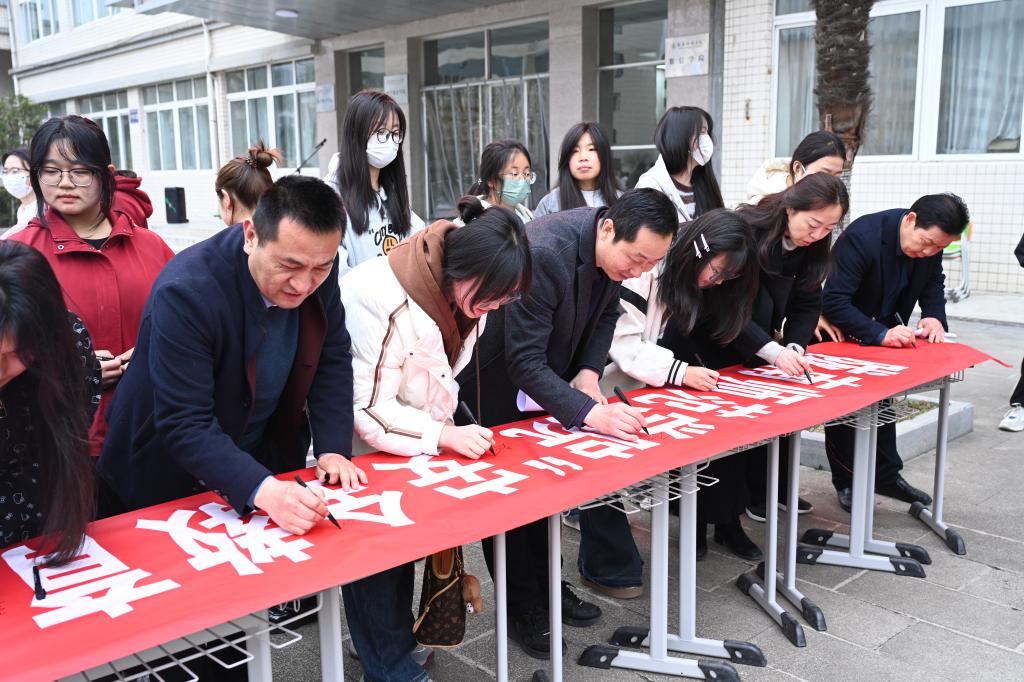 启动仪式后,参与活动的师生纷纷在防灾减灾主题横幅上签下自己的名字。签名不仅仅是对防灾减灾庄严的宣誓,更是对共同守护校园安全坚定信念的表达。