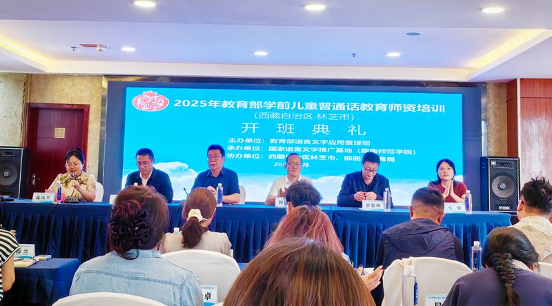 8月11日,国家语言文字推广基地(best365英国在线体育官网)承办的教育部2025年学前儿童普通话教育师资培训班在西藏林芝开班。林芝市教育局副局长许登顺,best365副校长李开明、何新征出席开班仪式。教务处副处长崔俊峰、语言文字工作委员会办公室主任鹿凤琴,林芝市、那曲市18个县区的110名幼儿园教师参加了开班仪式。