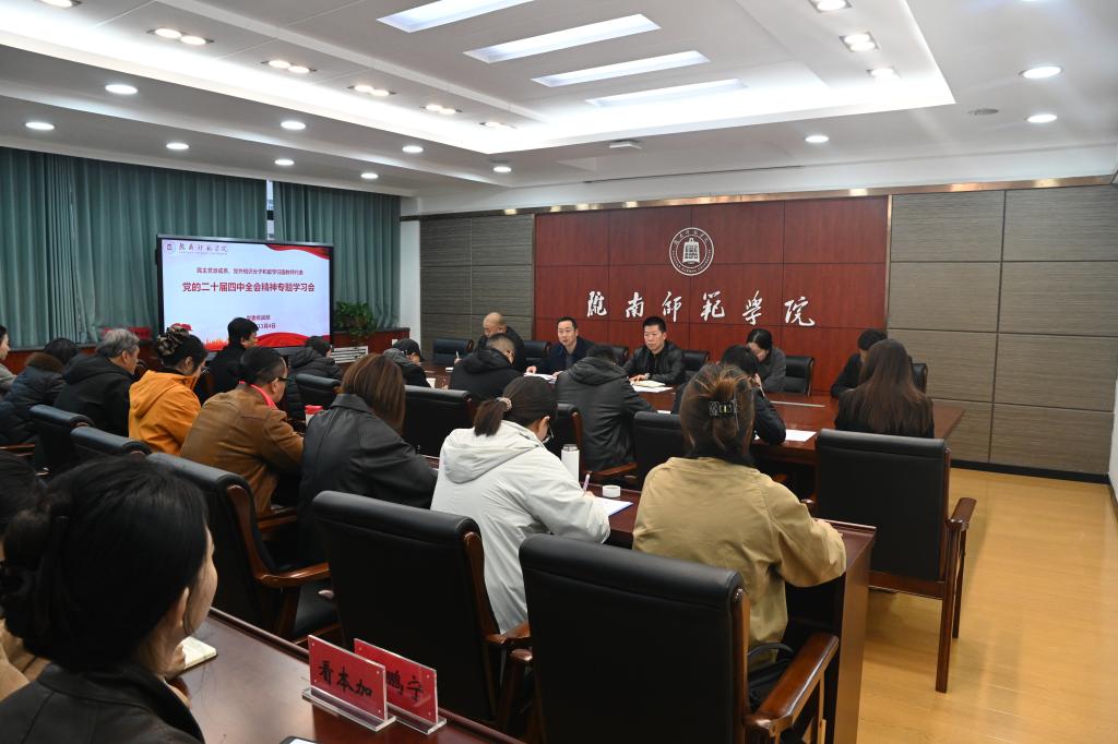 根据学校党委安排,11月4日下午,党委统战部组织民主党派成员、党外知识分子和留学归国教师代表学习党的二十届四中全会精神。民进best365英国在线体育官网支部、民盟best365英国在线体育官网总支、九三学社徽成支社、无党派人士、留学归国教师和统战部等40余人参加了会议。会议由党委统战部常务副部长张益斌主持。