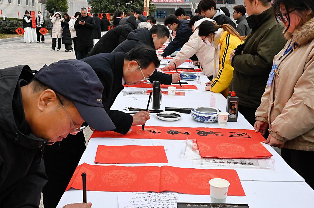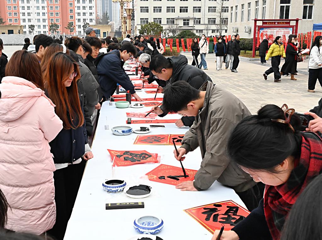 此次活动由校工会精心策划组织,由专业书法老师和学校书法爱好老师以及学生共同书写,现场赠送了300余幅春联及特色文创产品,后续还将为每一位教职工送上专属春联,累计赠送量达1000余幅。(校工会)