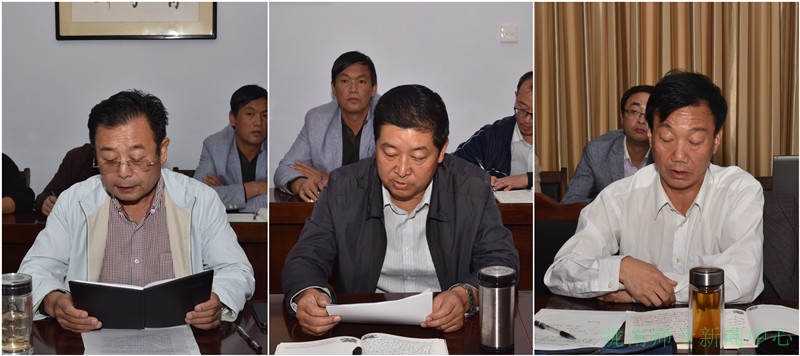 党委副书记、纪委书记王莹成发言 副校长任永峰发言 党委委员张勇发言
