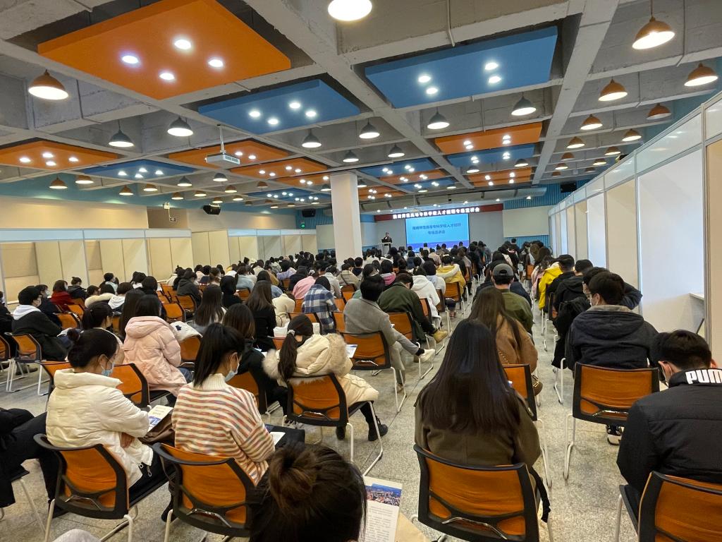张建辉介绍了学校的历史沿革、办学特色以及工资待遇等方面情况,他希望广大毕业生来校工作,学校将竭尽所能地贴心关爱人才,用心用情地做好服务,大力搭建人才多元发展平台,尽最大努力帮助人才在学校实现个人价值。