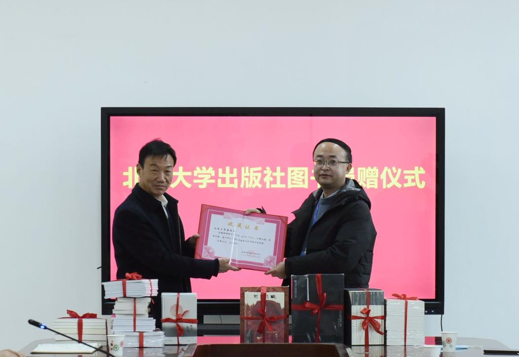 北京大学出版社捐赠图书,学校颁发收藏证书