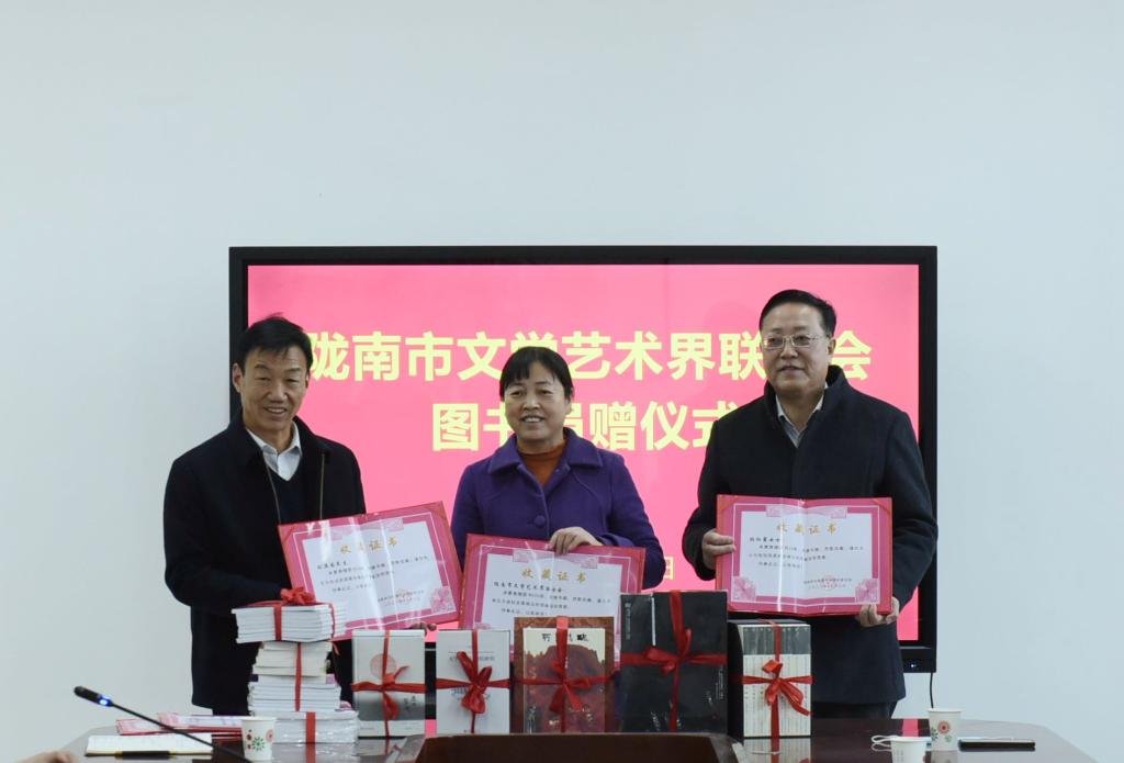 陇南市文联捐赠图书,学校颁发收藏证书